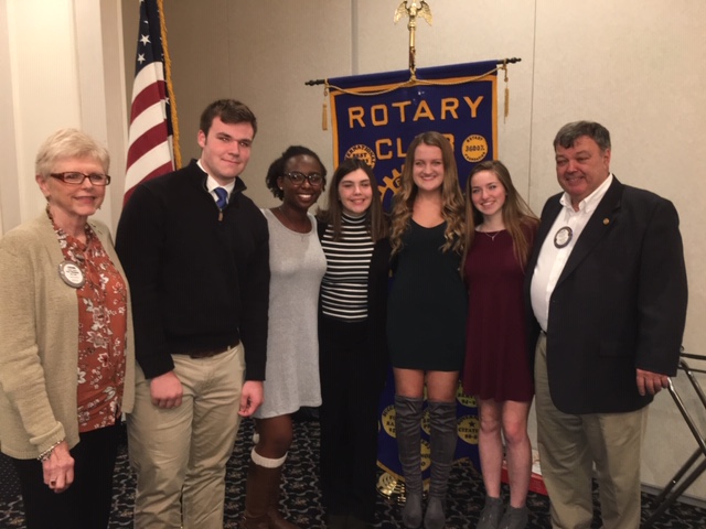 RYLA students share their experiences at June conference. From l. to r.; RYLA Chair LouAnn Jendro, Andrew Salois, Shakira Kawuba, Jillian Gomes, Rachael Doyle, Paige Dame, Club President Chuck Moran.
